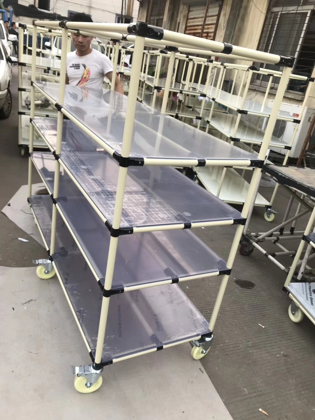 湖南邵阳市可移动精管物料架带脚轮,车间现场