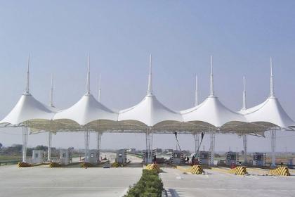 膜结构建筑排水设计依可然采用无组织排水或有组织排水方式。由于膜结构建筑的造型奇特,自由曲面,应充分考虑造型与排水的合理方式。膜结构排水坡度要求大于一般建筑。平膜坡度15%——20%以上,双曲膜脊度应大于10%。同时膜面预张力1.0——2.0kN/m以上,避免